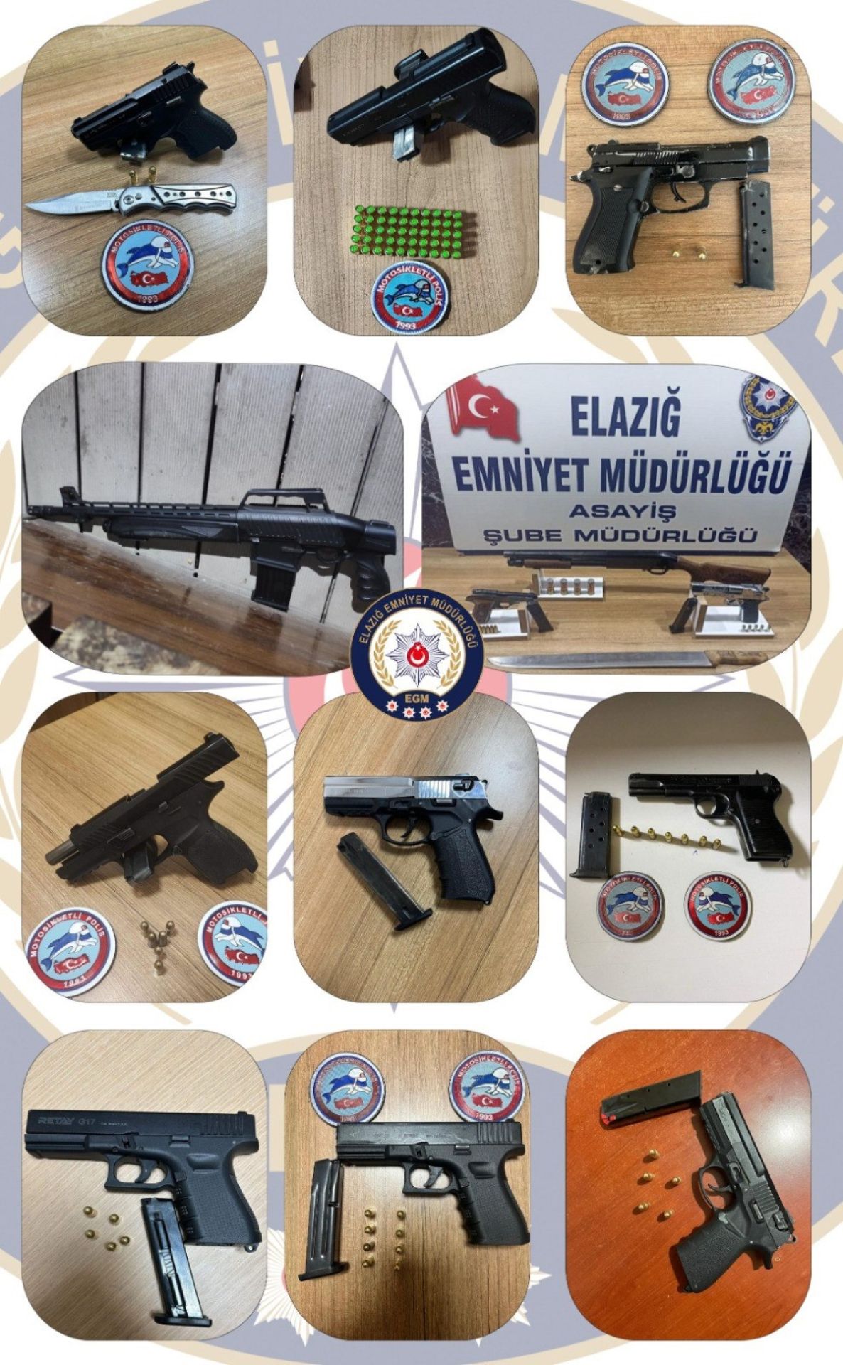 Yapılan uygulamalarda ruhsatsız tabanca-tüfek taşıyan 11 şahıs yakalanırken; 10 adet ruhsatsız tabanca ve silahlara ait 47 adet fişek, 2 ruhsatsız pompalı tüfek ile 4 kartuş, 1 kuru sıkı tabanca, 50 fişek ile 2 kesici alet ele geçirildi.