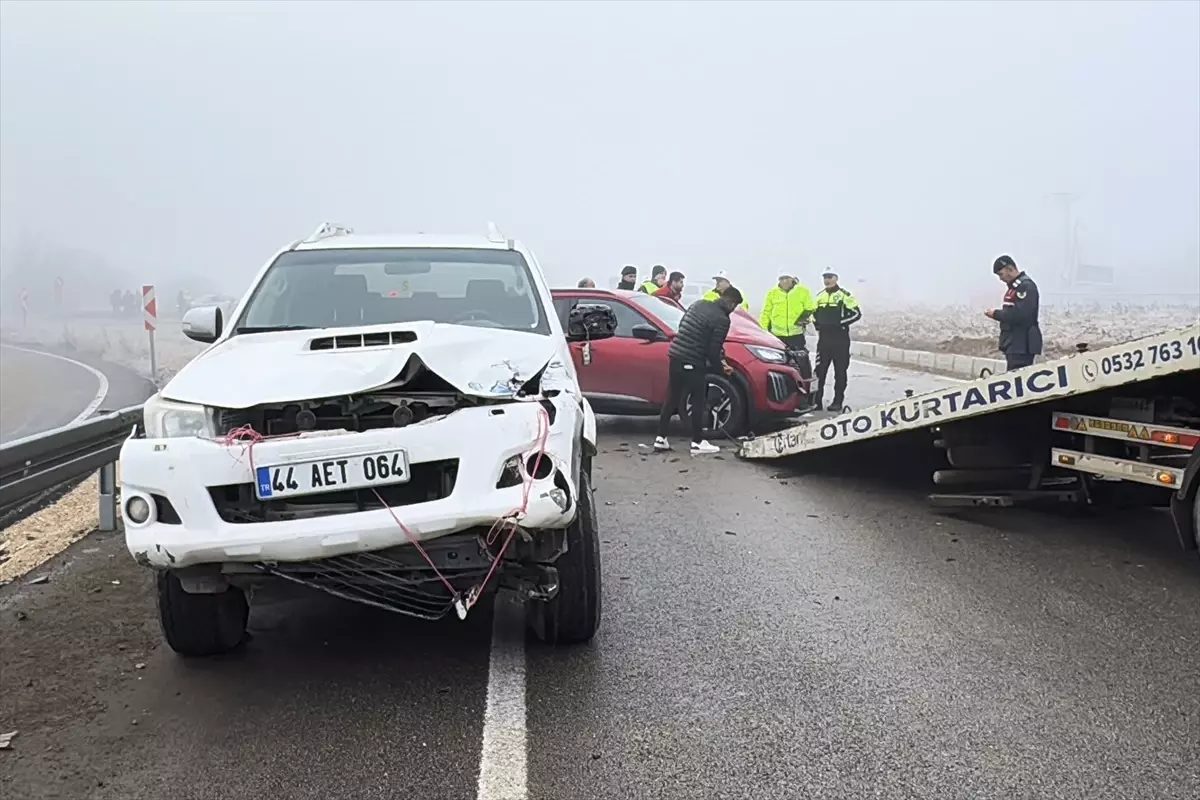 Sürücülerinin kimlikleri ve plakaları henüz öğrenilemeyen tır, kamyon, kamyonet, pikap, hafif ticari araç ve 2 otomobil, sis ve yolda oluşan buzlanma nedeniyle Elazığ- Malatya kara yolunun Hankendi köyü mevkisinde çarpıştı.