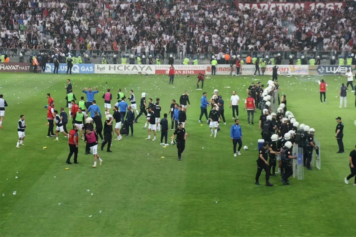 Bu kişilerden A.A. ve B.D’nin gözaltına alındığı ifade edilen açıklamada, “Üçüncü kişinin yakalanması için çalışmalar devam etmekte. Ayrıca müsabaka esnasında yan hakeme yabancı madde atarak yaralanmasına sebebiyet veren E.K. de 29 Mayıs’ta gözaltına alınmış olup, adli işlemleri devam etmektedir.” denildi.