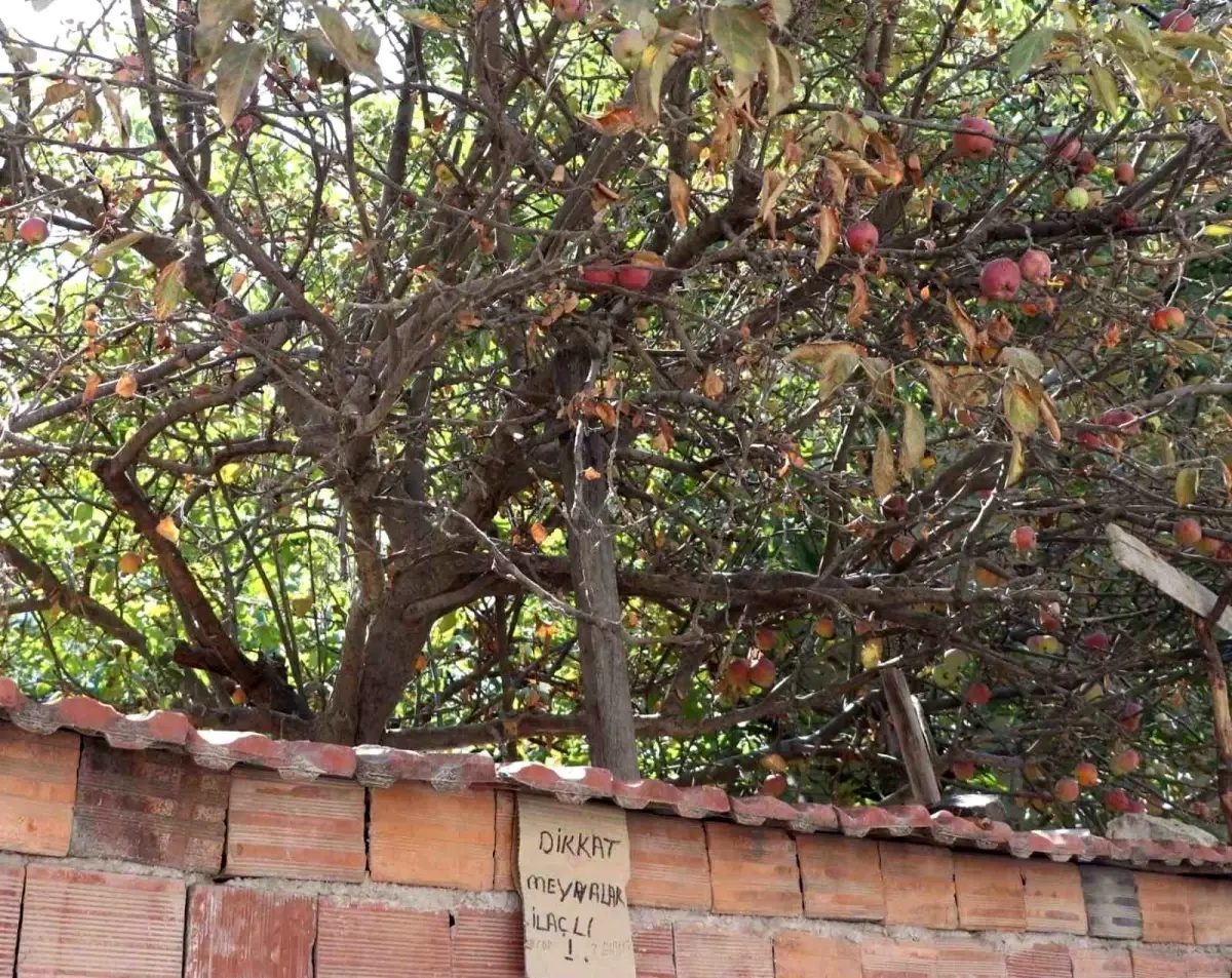 Erenköy Sokak’ta bulunan müstakil bir evin bahçesinde, dalları olgunlaşmış kırmızı elmalarıyla dolu bir ağaç yer alıyor. Ancak bahçe duvarına asılan el yazısı tabela, görenleri hem şaşırtıyor, hem de düşündürüyor. Bahçe sahibinin, “Dikkat meyveler ilaçlı, çok zehirli” yazısını, ağaçtan meyve koparılmasını engellemek amacıyla astığı şeklinde yorumlanıyor. – ESKİŞEHİR