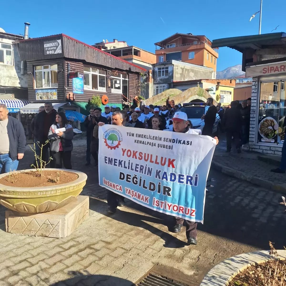 Tüm Emekliler Sendikası’nın Artvin’deki Hopa, Kemalpaşa ve Borçka üyeleri, Kemalpaşa Meydanı’nda bir araya gelerek basın açıklaması yaptı. Kemalpaşa Meydanı’nda gerçekleştirilen basın açıklamasında, Kemalpaşa Temsilcisi Fikret Altunkaya, şu ifadeleri kullandı: