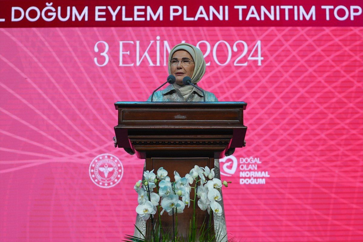Doğumla ilgili bazı temel gerçeklerin yeniden hatırlanmasına ihtiyaç olduğunu vurgulayan Emine Erdoğan, “Kadın bedeninin tamamen içgüdüsel ve adeta programlanmış bir şekilde fıtri yürüttüğü doğum tecrübesinin dışarıdan kontrol edilmesi mümkün değildir. Doğumun süresi, ne zaman ve nasıl gerçekleşeceği fizyolojik ve psikolojik birçok faktöre bağlıdır. Aynı annenin yaşadığı doğum tecrübeleri bile birbirinin aynısı değildir. Dolayısıyla her doğum kendine hastır, eşsizdir ve özeldir” dedi.