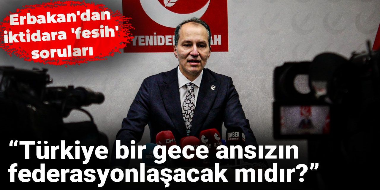 “Bu vesile ile de kaygı ve endişelerimizi bir kere daha sıralıyor, eğer barış olacaksa hilesiz ve takıyesiz olması gerektiğini hatırlatıyoruz” diyen Erbakan iktidara şu soruları yöneltti: