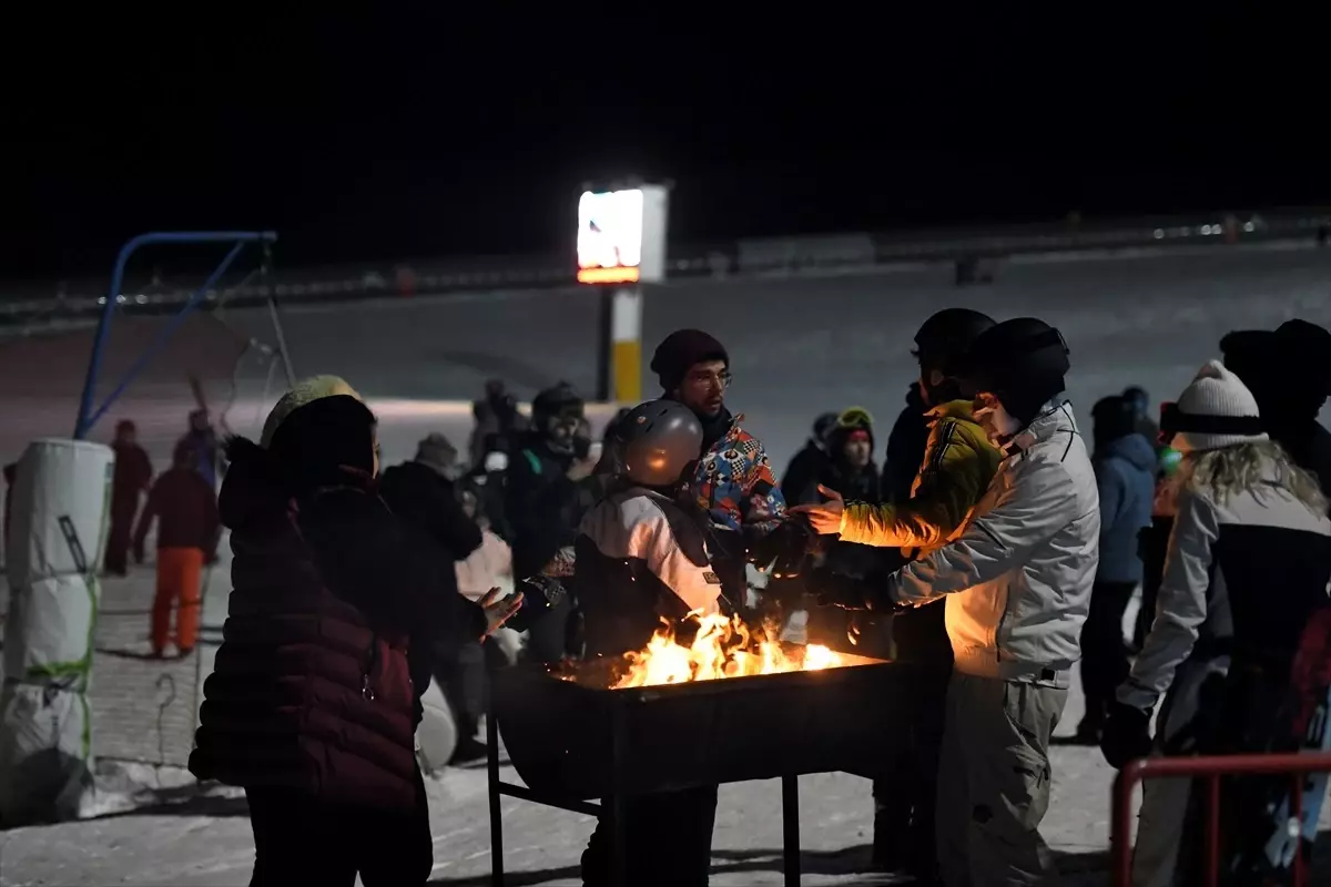 Ellerindeki meşalelerle kayak yapan kayakseverler, Erciyes’te pistleri aydınlatırken yerli ve yabancı turistler kayak yaparak gönüllerince eğlendi.