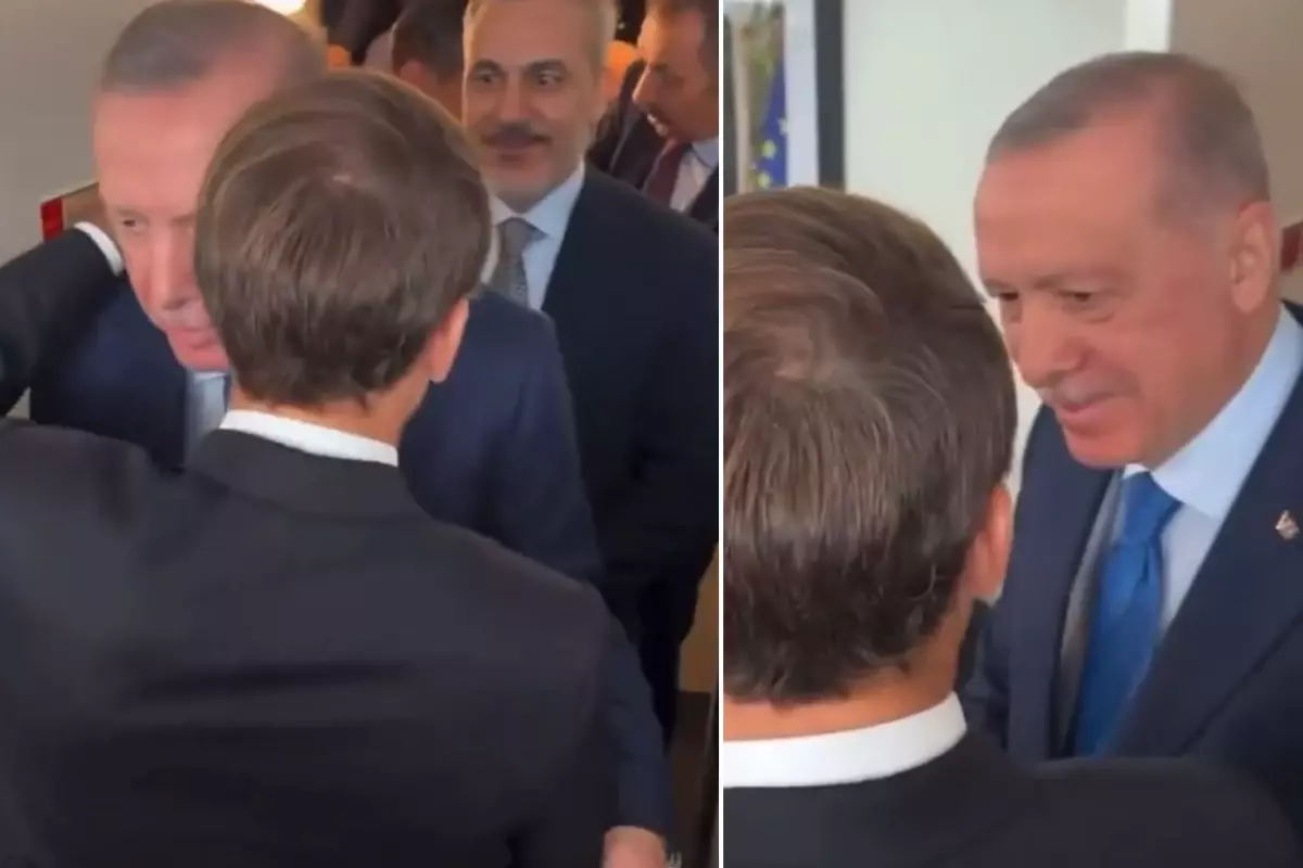 Cumhurbaşkanı Erdoğan, Macron’a “Nasılsınız?” diye sordu. Macron’un “İyiyim” cevabı sonrası ise Erdoğan “İyiymiş, iyi olduğu zamanlar da oluyor demek ki” karşılığını verdi.