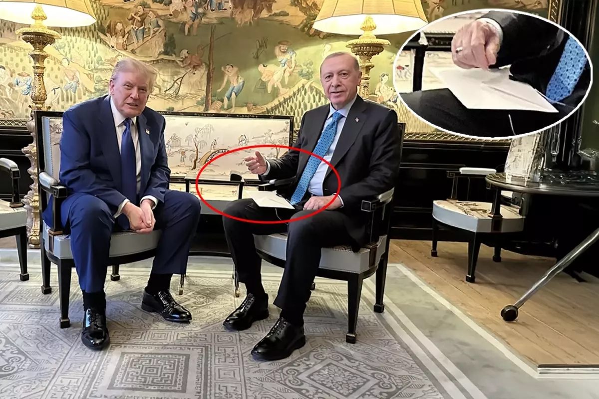 Cumhurbaşkanı Erdoğan ile ABD Başkanı Trump arasındaki görüşme sırasında çekilen fotoğraf büyük ses getirdi. Erdoğan'ın elinin altında tuttuğu zarf dikkatlerden kaçmazken içinde ne olduğu ise merak konusu oldu. Zarfta Erdoğan'ın Trump ile görüşmede masaya getireceği konularla ilgili notları olabileceği ifade edilirken ABD Başkanı tarafından verilen bir mektup da olabileceği değerlendirildi.