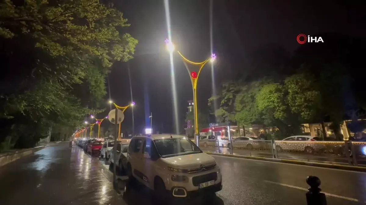 Gök gürültüsü ile birlikte peş peşe çakan şimşekler şehrin hemen her noktasından görülürken, şimşekler gökyüzünü aydınlattı.