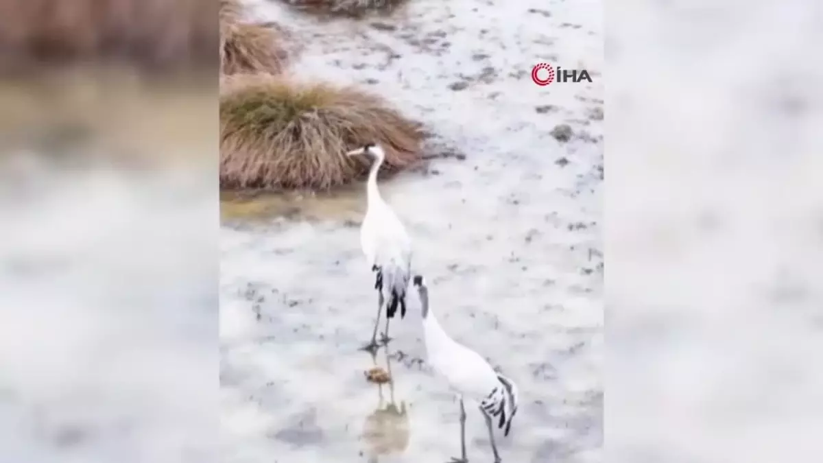 ERZİNCAN – Türkülere ilham kaynağı olan nesli tükenme tehlikesi altındaki allı turnalar, Erzincan’ın merkez Ekşisu Sazlığında görüntülendi.