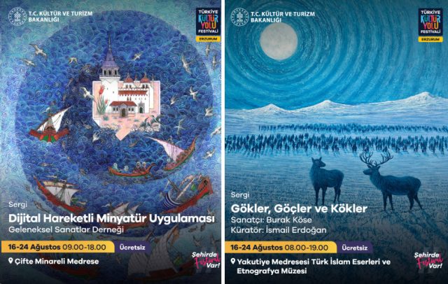 Erzurum’un kültürel simgelerinden Çifte Minareli Medrese’de “Yaşayan Miras: Zanaattan Sanata Tespih”, “Türkiye’nin Minyatürleri”, “Dijital Hareketli Minyatür Uygulaması” ve “Türkiye’nin Ustaları belgesel gösterimi “sanatseverleri büyüleyici bir deneyime davet ediyor. “Hislerin Tasviri” minyatür sergisi ise tarihin ruhunu ve sanatın zarafetini bir arada yaşatıyor.
