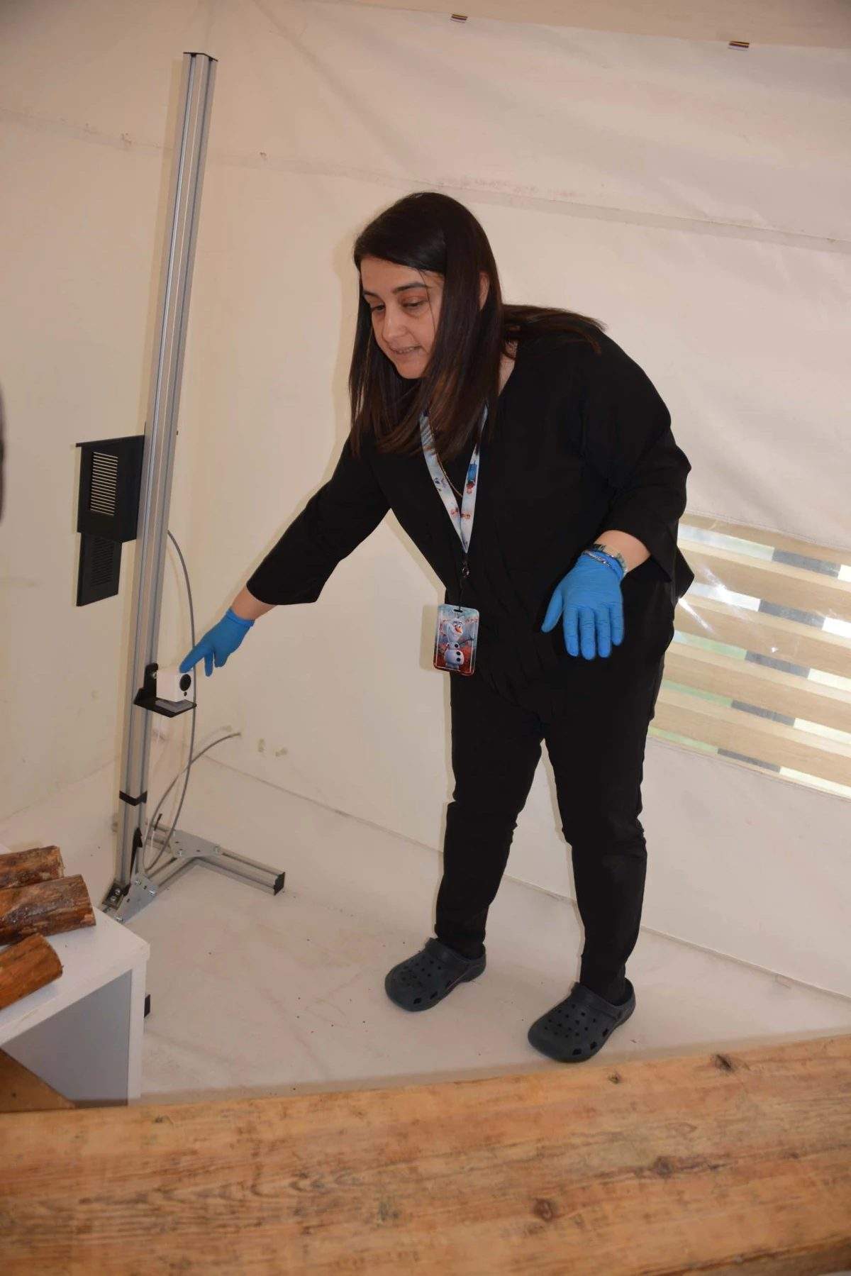 Cihazın tasarımını kurum çalışanları olarak kendilerinin tasarladığını belirten laboratuvar sanat tarihçisi ve restoratör Rabia Genç, “Biyolojik bozulma, eserleri geri dönülmez bir noktaya getirebiliyordu. Önceki çalışmalarımızda biyolojik arındırma konusunda istediğimiz sonucu alamıyorduk. Kurum çalışanları olarak bunu yapabileceğimiz tam bizim istediğimiz gibi cihazı tasarladık. Atatürk Üniversitesi akademisyenleri ile Teknokent Ar-Ge Proje Hocam ofisinden cihazın yapımı konusunda destek aldık. Proje dijital kontrol panelinin yanı sıra çadırdan oluşuyor. Gaz sızdırmaz özelliği olan çadırın içinde gaz basıncını, sıcaklığı ve havayı ölçeceğimiz sensör ile eserin durumunu takip ettiğimiz kamera bulunuyor” dedi.