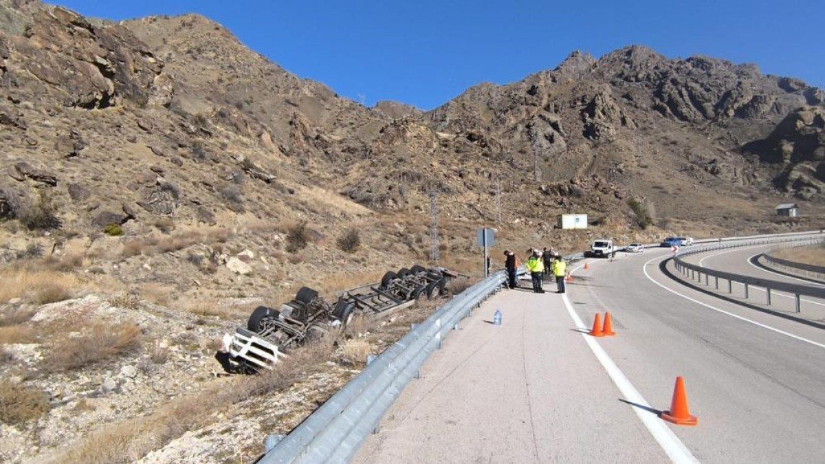 Azerbaycan plakalı tırın sürücüsünün kimliği ve yaşı henüz belirlenemedi. Kazada tır, şarampole yuvarlanarak ters döndü ve içerisindeki yük çevreye yayıldı.