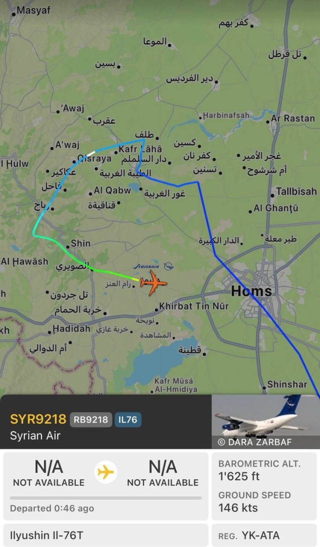 Muhaliflerin eline geçen Humus’un üstünden geçen uçağın, Humus’un kuzey batısında uçağın radardan kaybolmadan önce 1600 fit yüksekliğe kadar alçaldığı ve “olağandışı hareketler” yaptığı yansıdı. İrtifa kaybeden uçağın, Humus’un batısında izi kaybedildi.