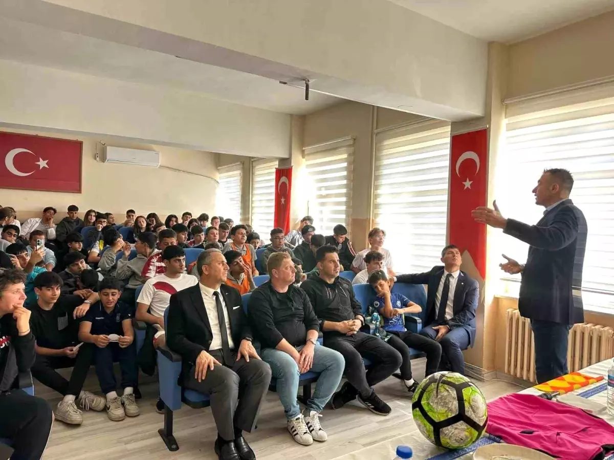Söyleşi etkinliği ise renkli görüntülere sahne oldu. Göçek, öğrencilere hakemlikle ilgili tavsiyelerde bulunduktan sonra öğrencilerin sorularını da cevapladı. Etkinlik sonunda Öğretmen Hulusi Tatar, Göçek’in isminin yazılı olduğu hediyeyi kendisine takdim etti. Hakem Hüseyin Göçek de görevli idareci ve öğretmenlere profesyonel maçlarda kullandığı sarı ve kırmızı kartları imzalayarak hediye etti.