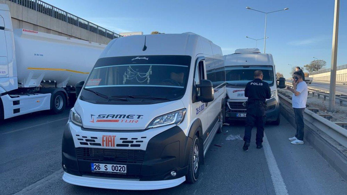 2 minibüs, 1 kamyonet ve 2 otomobilin karıştığı trafik kazasında Y.G. isimli 1 kişi, hafif şekilde yaralandı.