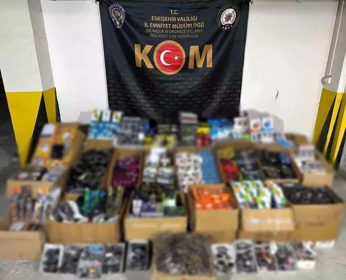 Edinilen bilgilere göre, Eskişehir Cumhuriyet Başsavcılığı koordinesinde Eskişehir Emniyet Müdürlüğü’ne bağlı Kaçakçılık ve Organize Suçlarla Mücadele (KOM) Şube Müdürlüğü ekiplerince halk sağlığının korunması ve haksız kazancın engellenmesine yönelik çalışma yapıldı. Ekiplerin çalışmaları sonucunda, 4 bin 966 adet gümrük kaçağı eşya ve bin 205 adet bitkisel ürün ele geçirildi. Bu çerçevede, 2 şüpheli şahsa 5607 Sayılı Kaçakçılıkla Mücadele Kanunu ve Türk Ceza Kanunu’nun ilgili maddelerince adli işlem yapılırken, 1 şahsın sevk edildiği adli makamlarca tutuklandığı belirtildi.