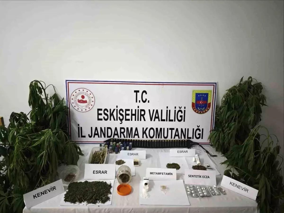 İnönü Kaymakamlığı’nın paylaştığı bilgiye göre, Eskişehir İl Jandarma Komutanlığı’na bağlı Narkotik Suçlarla Mücadele Şube Müdürlüğü ve İnönü İlçe Jandarma Komutanlığı ekiplerince bir ikametin bahçesinde yasadışı kenevir bitkisi ekimi yapıldığı öğrenildi. Alınan arama kararı sonucunda yapılan aramada; 30 kök kenevir bitkisi, 520 gram esrar maddesi, 15 gram metamfetamin, 27 adet av tüfeği fişeği ve 15 adet sentetik ecza hap ele geçirildi. İnönü İlçe Jandarma Komutanlığı’nda olayla ilgili adli işlemler başlatıldığı belirtildi. – ESKİŞEHİR