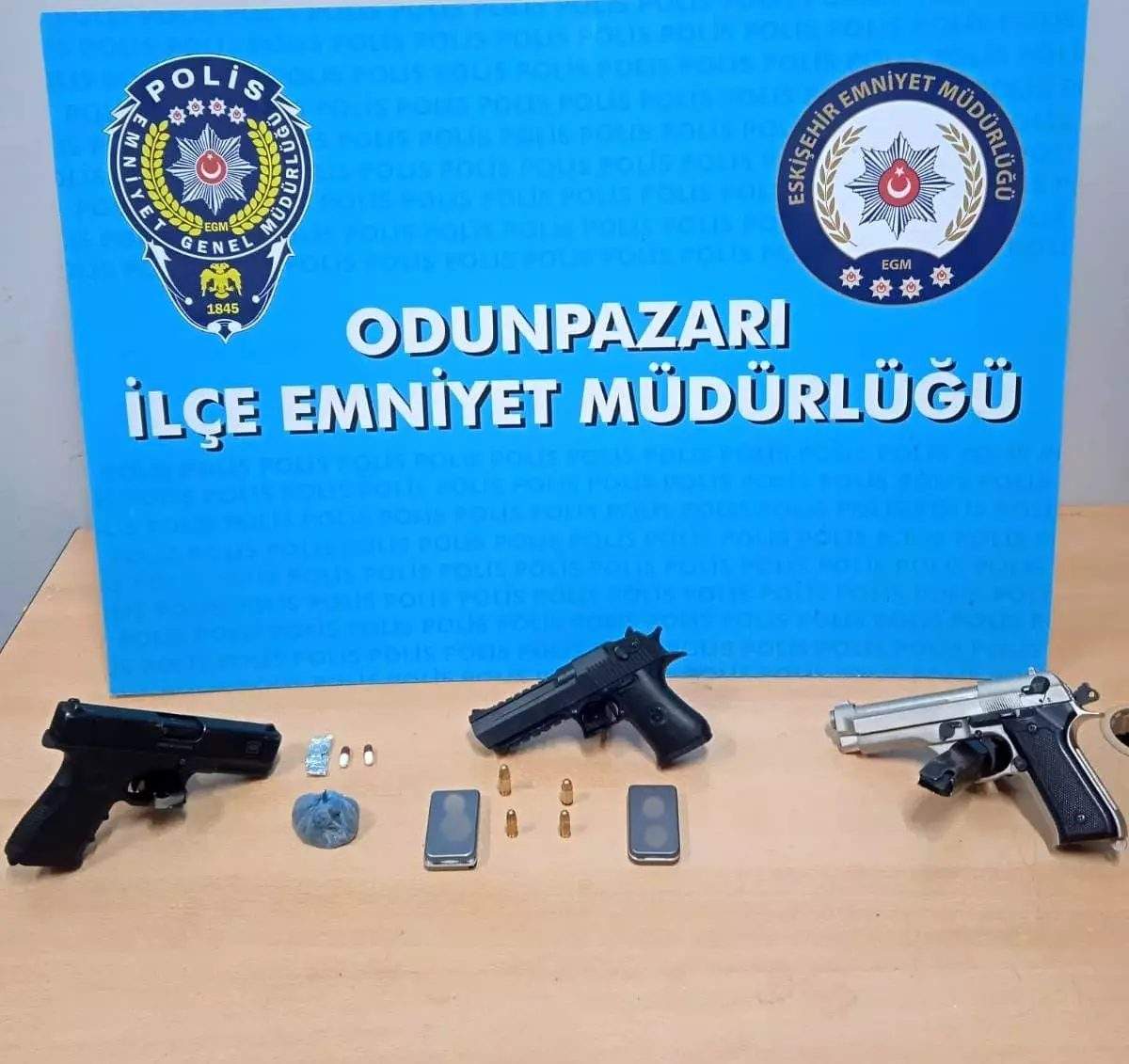 Eskişehir’de polis ekiplerince bir adreste yapılan çalışmada, 3 şüpheli üzerinden tabanca ve uyuşturucu madde ele geçirilirken, diğer 1 şüphelinin ise kesinleşmiş hapis cezası olduğu tespit edildi.