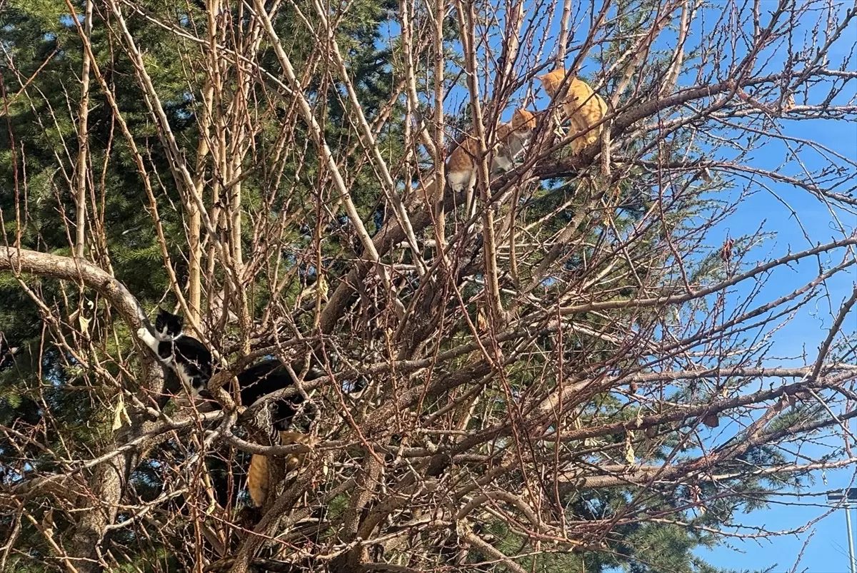 Kent merkezi Yenicami Mahallesi Sırasöğüt Caddesi’nde bulunan kayısı ağacı bir kedi ve 6 yavrusuna yaşam alanı oldu.