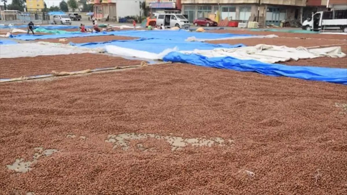 Giresun’un Espiye ilçesinde üreticiler fındığı pazar alanında kurutuyor.
