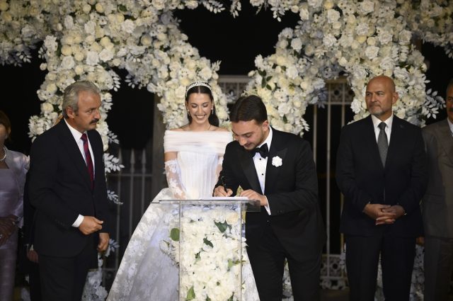 Kur’an tilavetiyle başlayan törende Diyanet İşleri Başkanı Ali Erbaş dua etti. Çiftin nikahını Esenler Belediye Başkanı Tevfik Göksu kıyarken, şahitliklerini protokol üyeleri yaptı.