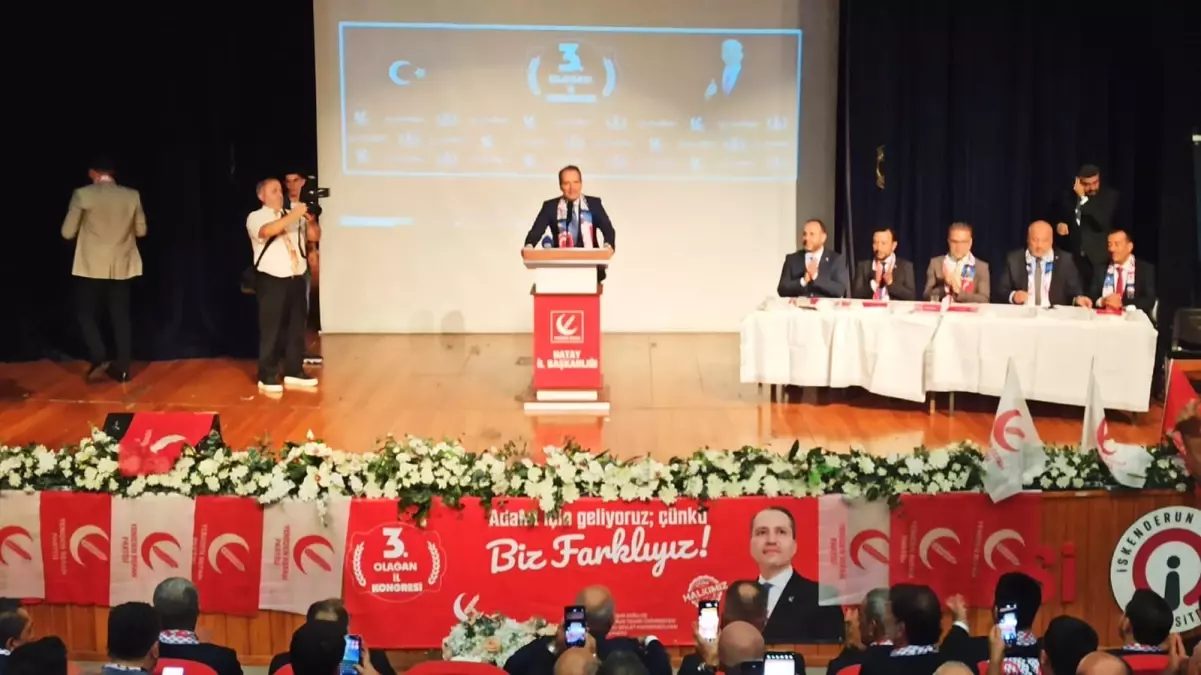 Yeniden Refah Partisi Genel Başkanı Fatih Erbakan, partisinin Hatay buluşması için İskenderun Teknik Üniversitesi Mustafa Yazıcı Devlet Konservatuvar Salonu’ndaki toplantıya katıldı. Toplantıya Yeniden Refah Partisi Genel Başkan Yardımcısı Nurettin Gül, il ve ilçe teşkilatları ile partililer katıldı. Erbakan, “Milli görüşçüler olarak Erbakan hocamızın giydirdiği ‘Milli Görüş’ gömleğini, son nefesimize kadar çıkarmayacağız. Milli görüş önce ahlak ve maneviyat anlayışıyla siyasette yeni bir çığır açan hidayettir” diye konuştu.