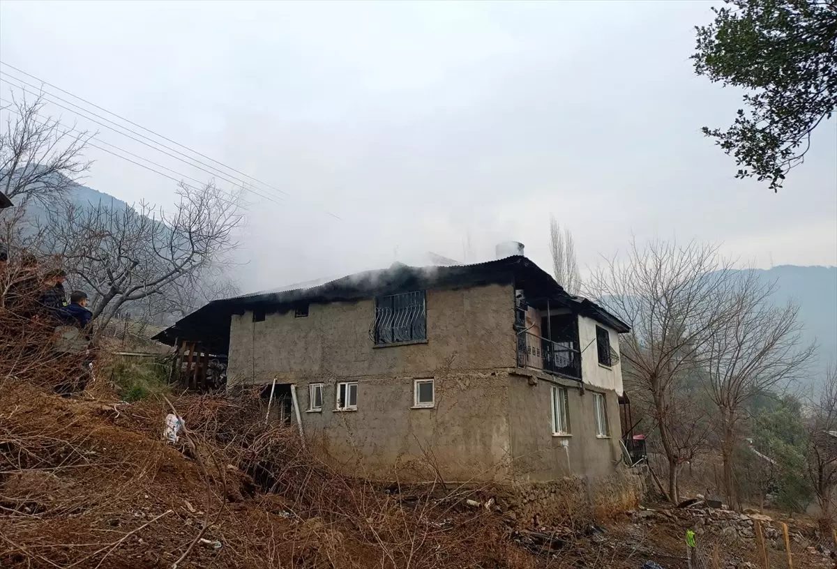İtfaiye ekiplerinin müdahalesiyle söndürülen yangın, evde hasara neden oldu.