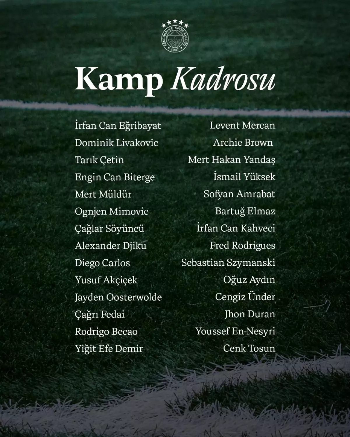 ” İrfan Can Eğribayat, Dominik Livakovic, Tarık Çetin, Engin Can Biterge, Mert Müldür, Ognjen Mimovic, Çağlar Söyüncü, Alexander Djiku, Diego Carlos, Yusuf Akçiçek, Jayden Oosterwolde, Çağrı Fedai, Rodrigo Becao, Yiğit Efe Demir, Levent Mercan, Archie Brown, Mert Hakan Yandaş, İsmail Yüksek, Sofyan Amrabat, Bartuğ Elmaz, İrfan Can Kahveci, Fred Rodrigues, Sebastian Szymanski, Oğuz Aydın, Cengiz Ünder, Jhon Duran, Youssef En-Nesyri, Cenk Tosun.” – İSTANBUL