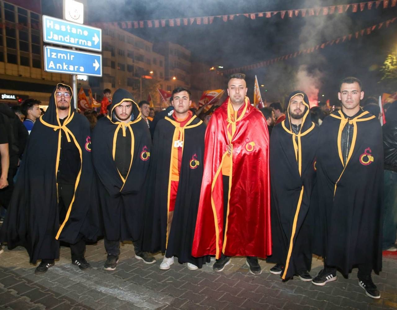 Sarı kırmızılı taraftarlar, kentin farklı noktalarında kutlamalarını sürdürürken, polis çevrede güvenlik önlemi aldı.