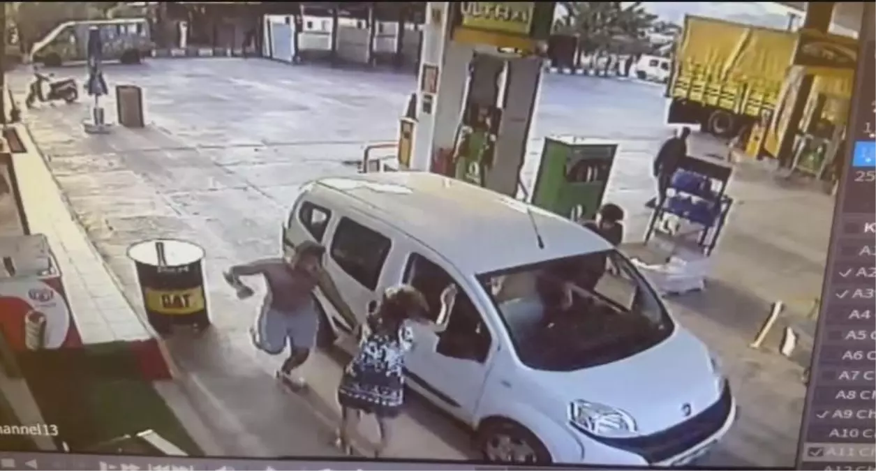 Akaryakıt istasyonundaki şiddet olayı, iş yerinin güvenlik kamerasına saniye saniye yansıdı. Görüntülerde, P.D. pompaların bulunduğu bölümde hafif ticari araçta bulunan bir kişi ile tartışırken gelen bir başka erkek, kadını darbediyor. P.D. akaryakıt istasyonunda bulunan markete girerek korunmaya çalıştığı sırada, ardından gelen kişi, P.D.’ye burada da şiddet uyguluyor. P.D.’nin tüm mücadelesine rağmen uğradığı tekme ve yumruklu saldırısı güvenlik kamerasına saniye saniye yansıdı.