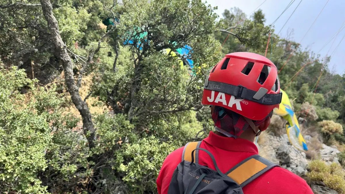 Babadağ'da iki yamaç paraşütü ağaçlara takıldı, biri JAK ekibiyle kurtarıldı.