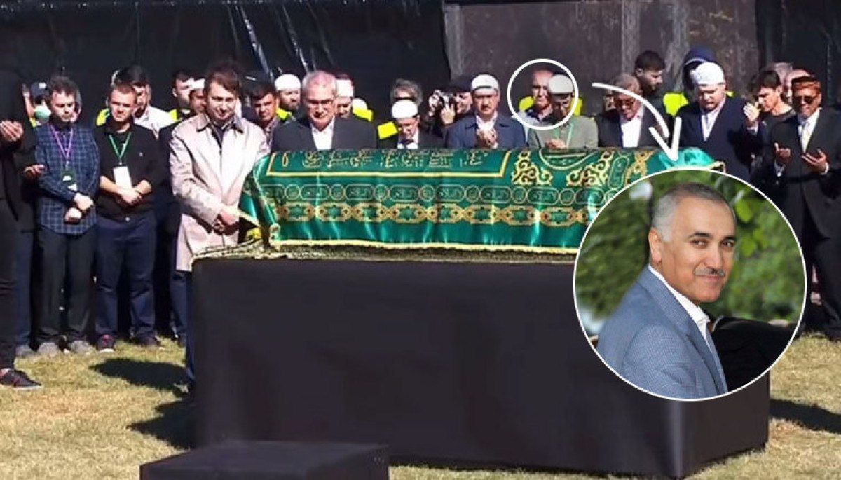 Örgüt töreni canlı yayınla aktarırken, Gülen’in tabutunun hemen arkasında bulunan ikinci safta bir kişi kameraya yansıdı.