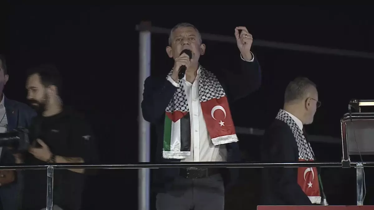 CHP Genel Başkanı Özgür Özel, “Bugün burada mazlumların yanında durmaya geldik; haksızlığa, katliama, soykırıma itiraz etmeye geldik. Bugün buraya 710 gündür Gazze’de devlet eliyle yapılan bir soykırıma, buna yol verenlere, göz yumanlara itiraz etmeye, tarih önünde tarihin doğru tarafında olmaya, katliamın karşısında durmaya geldik. 65 bin çoğu; çocuk ve kadın, 65 bin Filistinliyi katlettiler. 165 bin yaralı var, gazi var. O günden bugüne 147’si çocuk, 420 Filistinli açlıktan öldü. Birleşmiş Milletler kıtlık ilan etti. Giden insani yardımlara engel olanlar, yardım dağıtım sıralarında uzaktan keskin nişancılarla evladı için un, yağ bekleyen annelere, babalara, gencecik evlatlara ateş açanlar var. Biz bu vicdansızlığa karşı buradan sesimizi yükseltmeye geldik. Sumud filosu, onlarca gemiden oluşan gönüllülerin, aktivistlerin içinde olduğu Sumud filosu Gazze’ye doğru ilerliyor. Dün akşam Girit açıklarında saldırıya uğradı. Buradan Erdoğan’a, buradan bu ülkeyi yöneten herkese sesleniyoruz. Sumud, insanlığın vicdanıdır. Sumud, hepimizin vicdanıdır. O filoya sahip çıkın. O filoya destek olun. O filoyu koruyun, ne olursa olsun. Son dönemde dünyadan yükselen tepkiler var. İngiltere’nin, Fransa’nın, Kanada’nın, Avustralya’nın son dönemde Filistin’i tanımaları son derece önemli. 150’den fazla ülke 2 devletli çözümü savunmaya başladı. Bunun uluslararası alanda takipçisi olmak, bu çabaları yüreklendirmek ve Filistin için bunu en kararlı şekilde sürdürmek çok önemli” dedi.