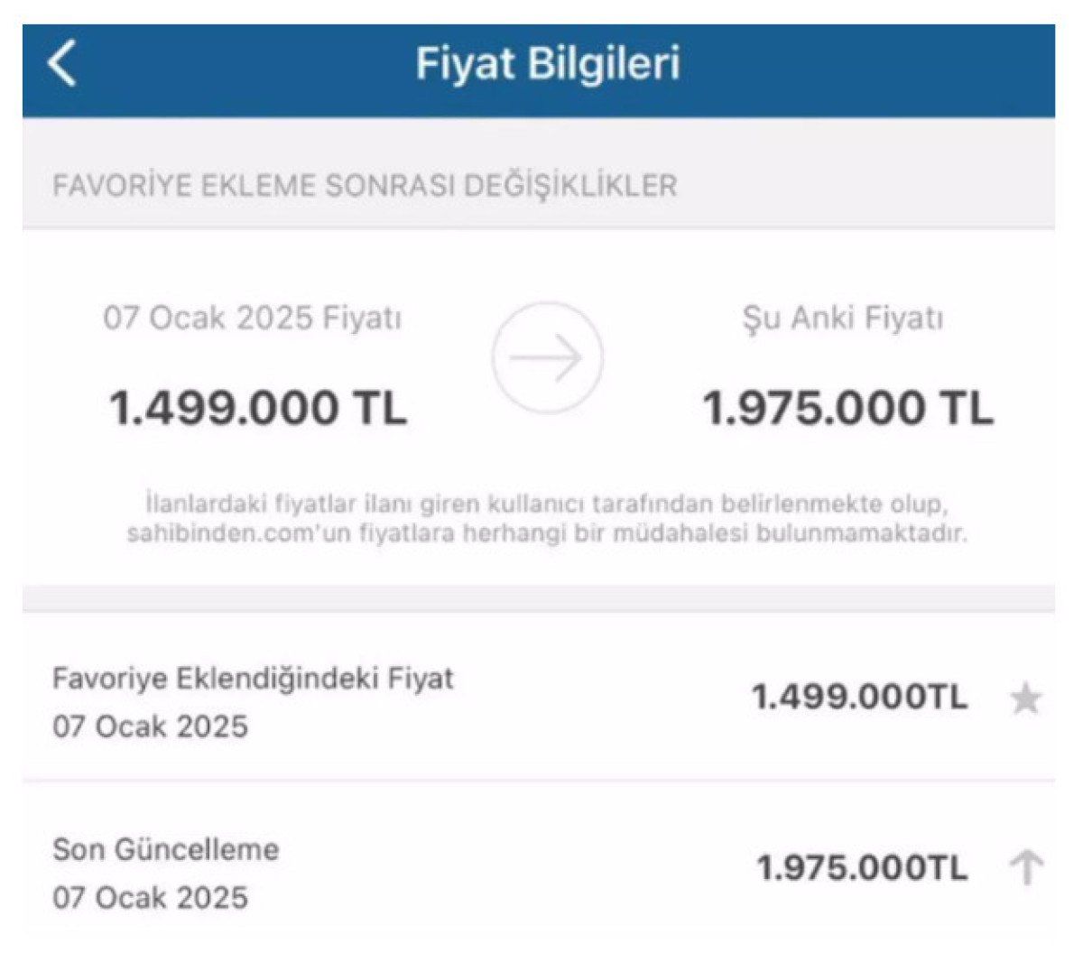 Bir diğer ilanda ise 1 Ocak’ta ilan sitesine konan evin fiyatının 100 bin TL artırıldığı görüldü.