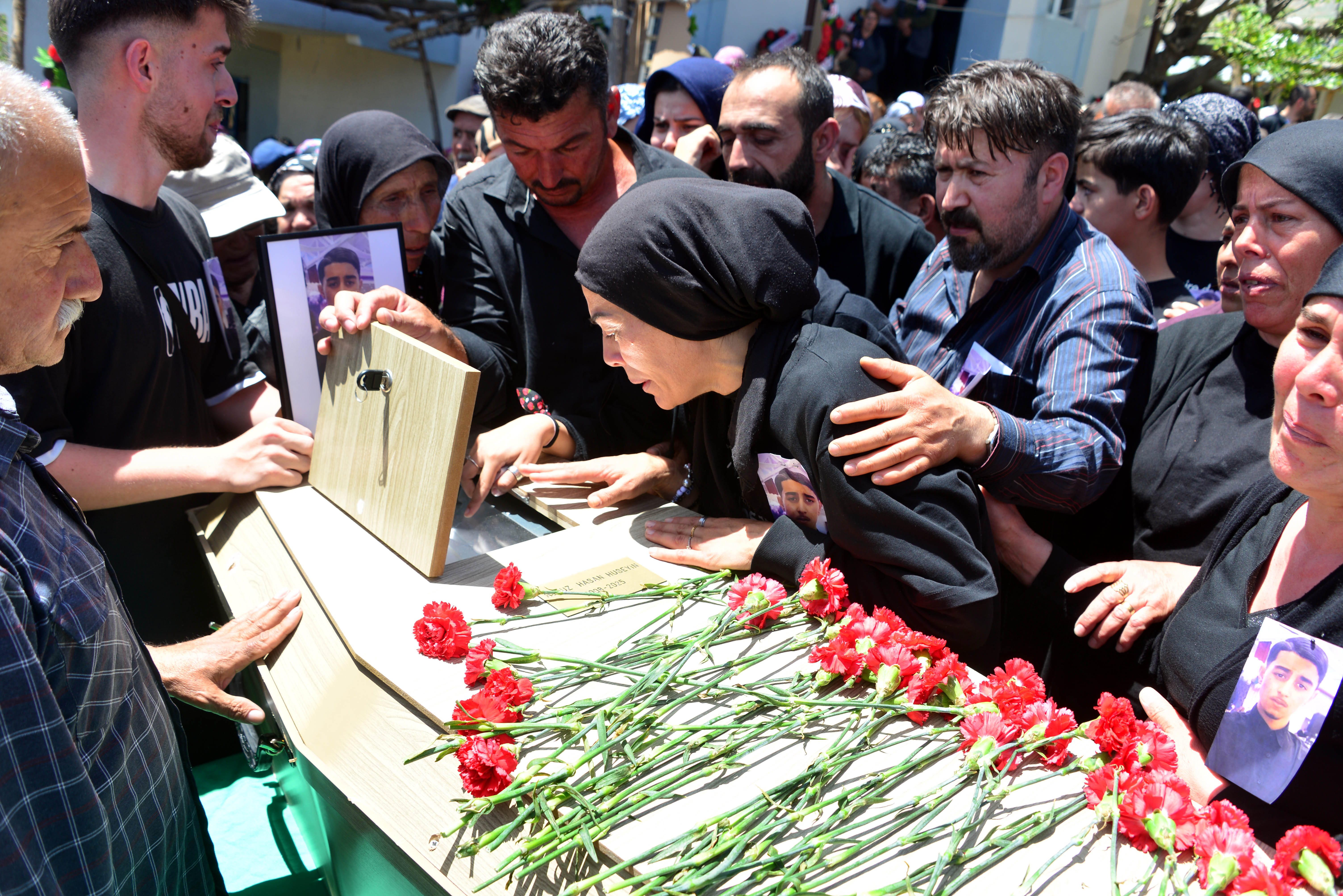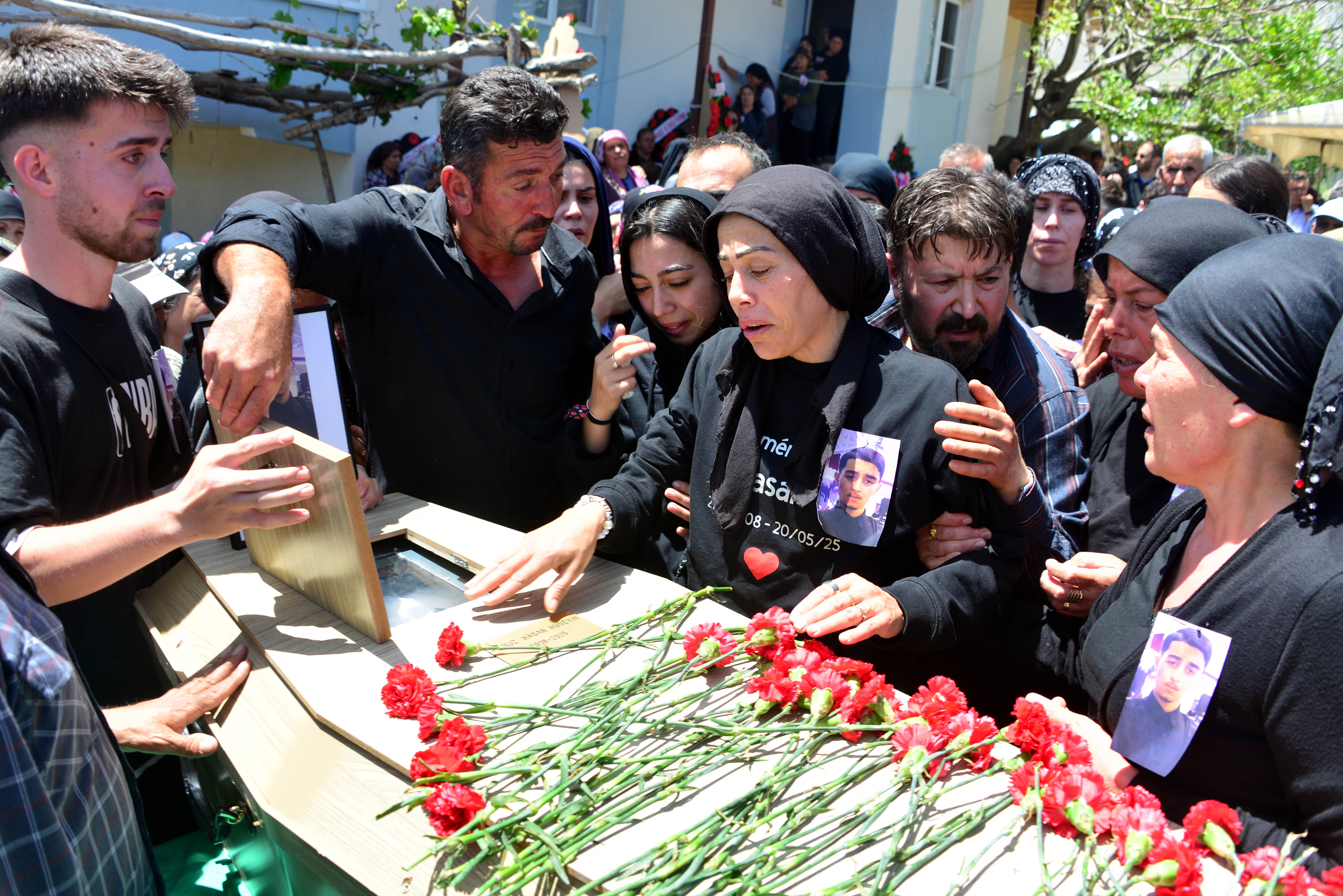 İbrahim Horoz ve Fatoş Horoz’un 4 çocuğundan Hasan Horoz’un cenazesi, ilk olarak Nurhak’ın Hüyük Mahallesi’ndeki evlerine getirildi. Tabutun cenaze aracından indirilmesiyle yakınları gözyaşlarına boğuldu. Acılı anne Fatoş Horoz, “İçim doldu doldu içim doldu. Ciğerim yanıyor. Damla damla kan akıyor. Cenazesine değil de düğününe gelseydiniz hep beraber düğününü çalardık dostlarım” diyerek ağıt yaktı.