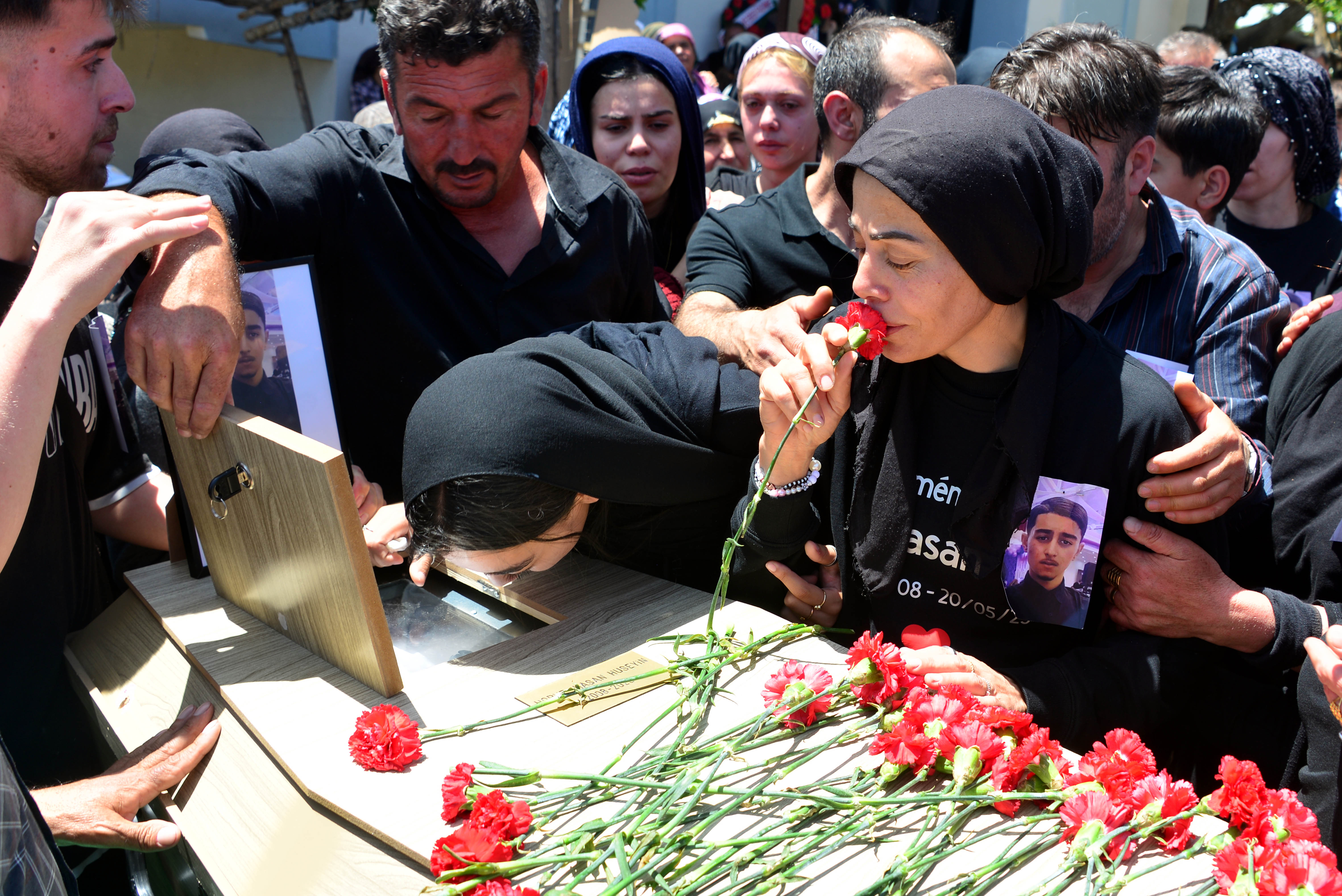 Tabutun üstündeki küçük kapak açılıp Hasan Horoz’un cenazesi son kez anne ve babası ile kardeşleri ve yakınlarına gösterildi. Oğluyla vedalaşırken gözyaşlarına hakim olamayan Fatoş Horoz, “Oğlum ben buradayım, arkandayım tamam mı. Ben geliyorum seninle buradayım, ölürüm ben senin yoluna annem” dedikten sonra tabutu öpüp karanfil bıraktı. Hasan Horoz’un cenazesi götürüldüğü mahalle mezarlığında gözyaşlarıyla toprağa verildi.