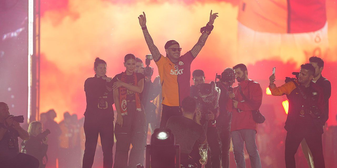 Süper Lig’de şampiyonluğa ulaşan Galatasaray, Yenikapı’da taraftarlarıyla buluştu. Üstü açık bir otobüsle etkinlik alanına gelen sarı-kırmızılı futbolcular burada yüzbinlerce taraftar tarafından coşkuyla karşılandı.