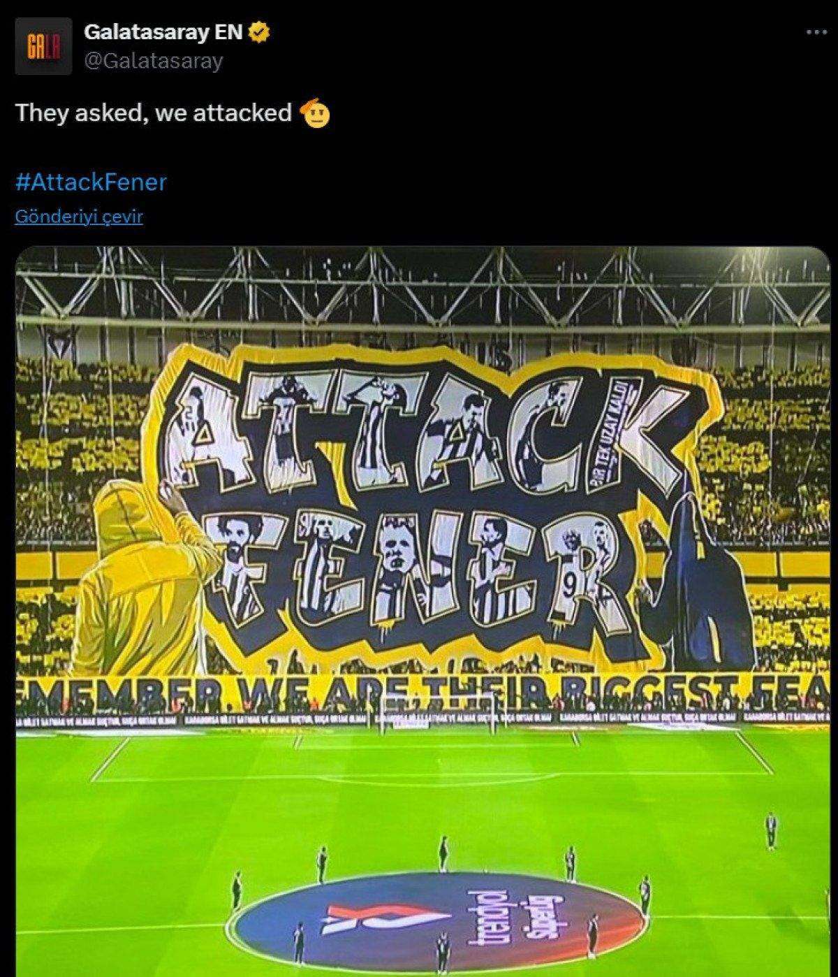 “Attack Fener” cümlesini “Fener’e saldır” olarak değerlendiren sarı-kırmızılılar, “Onlar istedi biz yaptık.” şeklinde bir paylaşım yaptı.