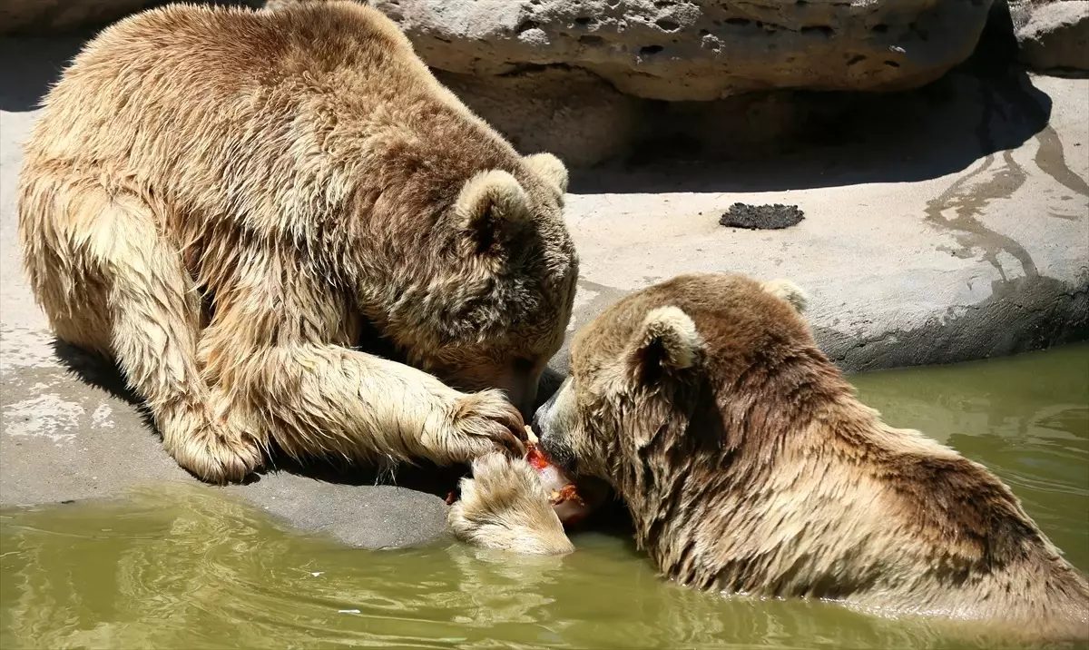 Termometrelerin 38 dereceyi gösterdiği kentte, hayvanat bahçesindeki hayvanlar için yaz mevsimine özel yiyecekler hazırlanıyor.