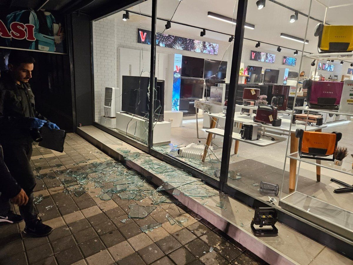 CAM VİTRİNLEİR KIRIP EŞYALARI ÇALDILAR