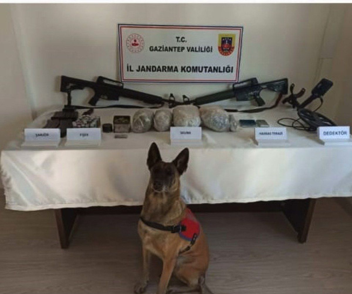 Eğitimli köpeğin de kullanıldığı operasyonda adreslerde yapılan aramalarda 2 av tüfeği, 40 fişek, 1 mayın dedektörü, 2 dijital hassas terazi ve 1 uyuşturucu madde öğütme aparatı ile toprak altına gizlenmiş 4 kilo 75 gram skunk ele geçirildi.