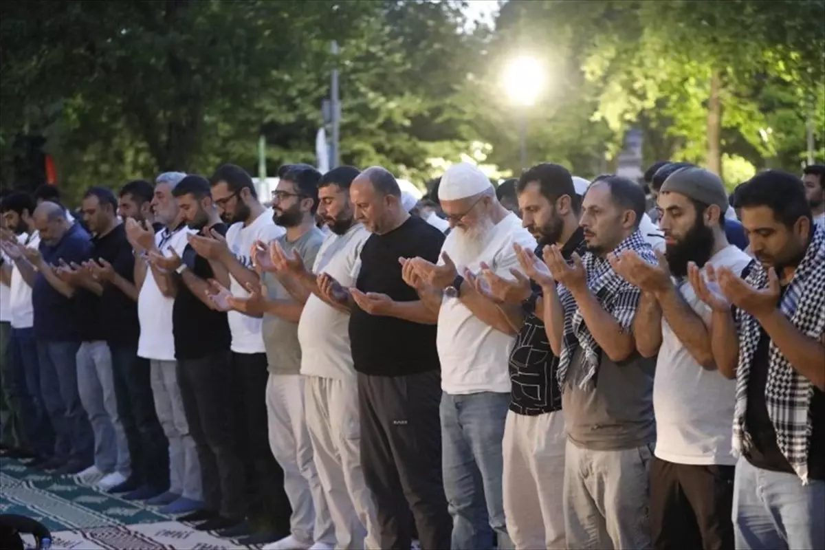 Parkta akşam namazı sonrası toplanan gruptakiler, Gazzeliler için Kunut duasını okudu.