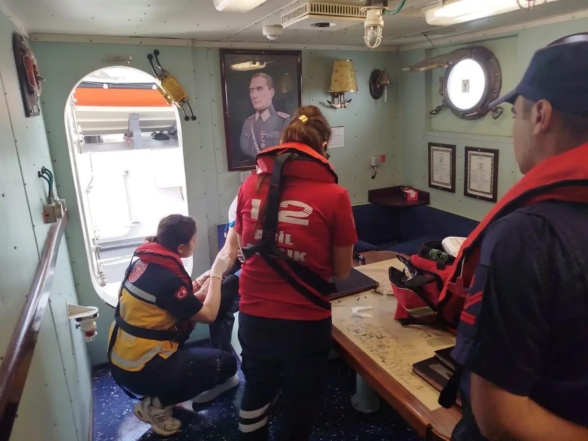 Ekipler, gemiye ulaşarak hastaya ilk müdahaleyi yaptı.