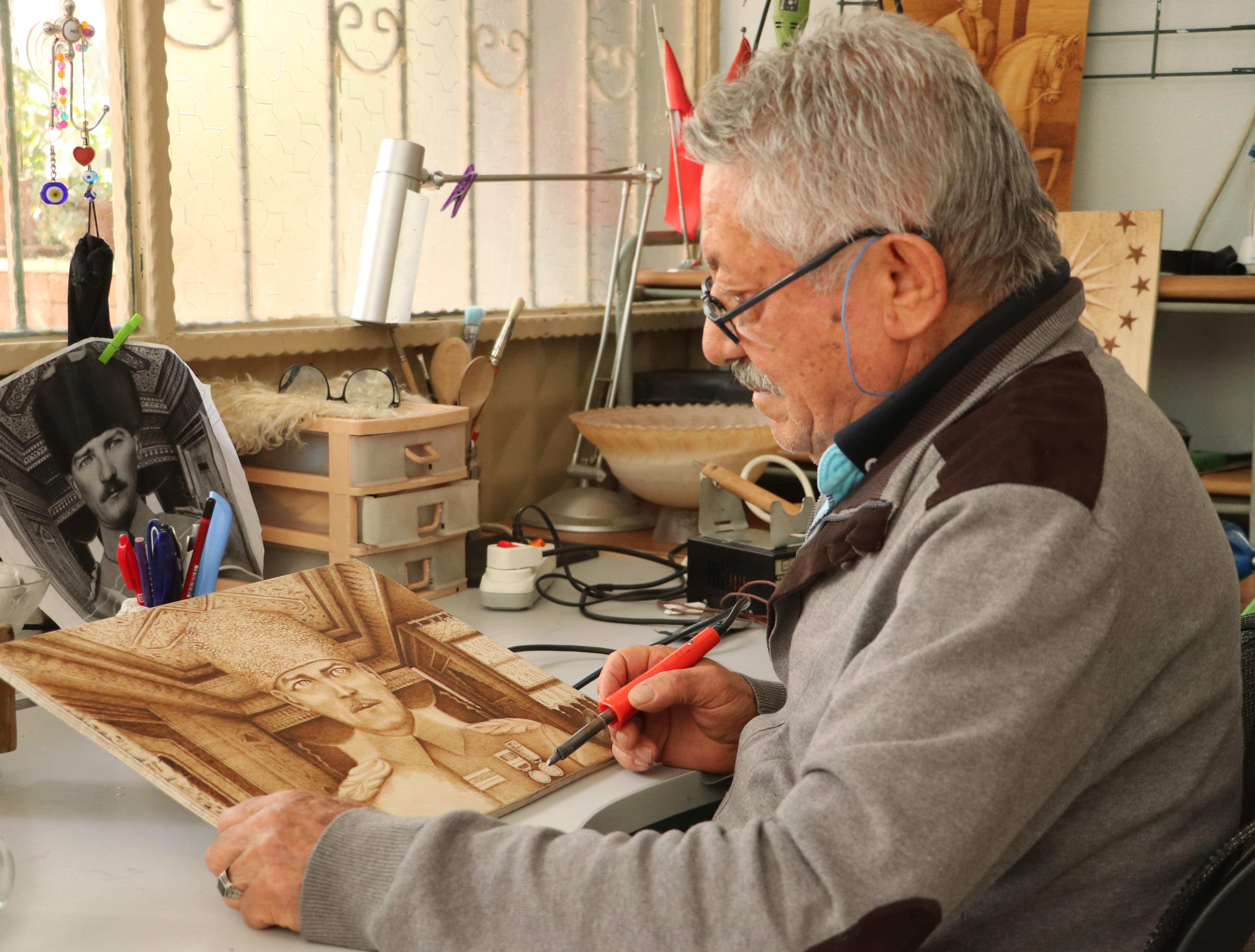 “Gençlerimize ahşap yakma sanatıyla gelenek ve göreneklerimizi anlatıyorum. Her konuda gelerek bana danışırlar. Onların sesini duymak beni mutlu ediyor. Gençler geliyor ve ‘bu nedir?’ diye soruyor. Hallacın ne işe yaradığını, bunun ne yaptığını anlatıyorum. Onlar da mutlu oluyor ve seviniyor.”