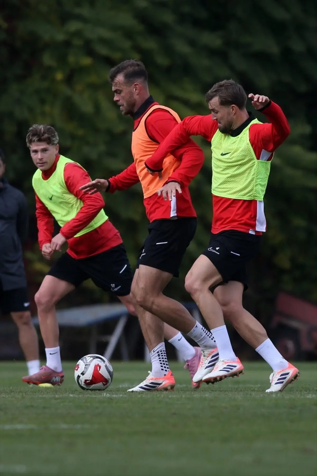 Antrenmanın ikinci bölümünde yarı sahada taktik ağırlıklı çalışma yapan futbolcular, çift kale maçla günü tamamladı.