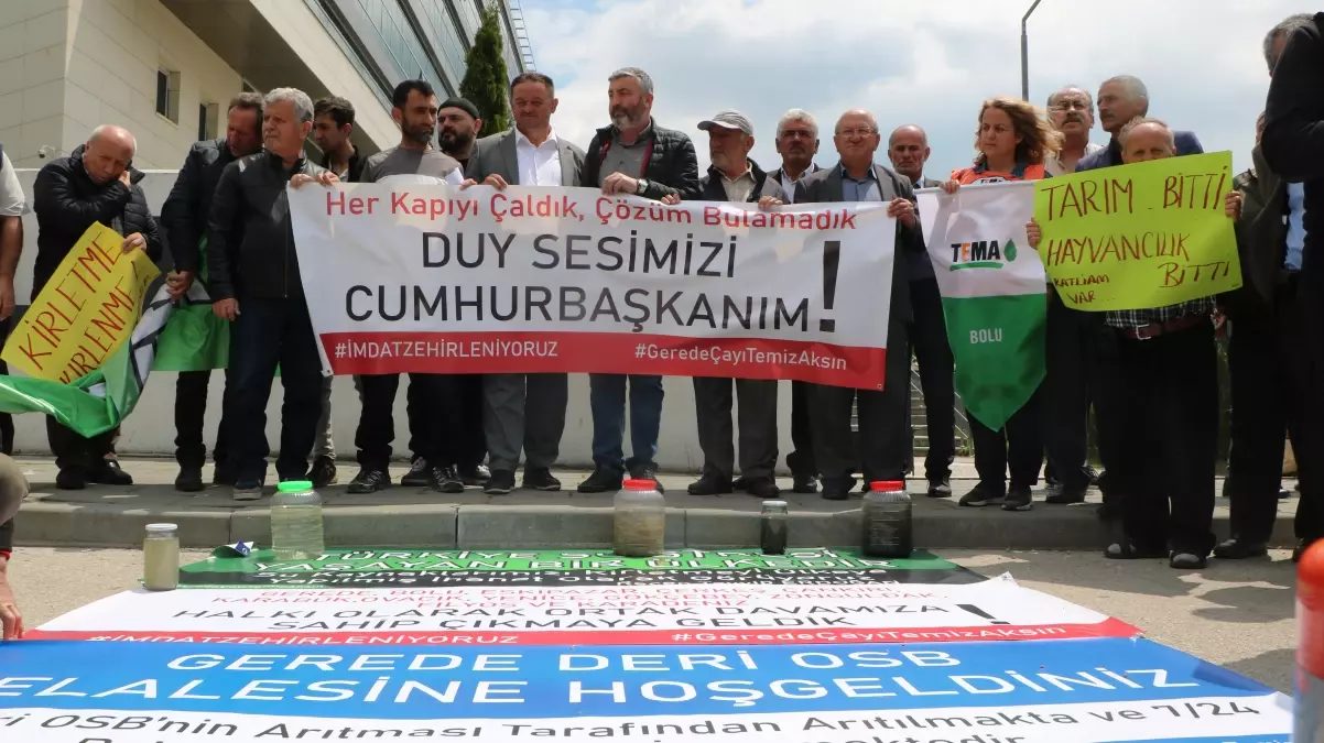Grup adına konuşan Avukat Yakup Şakip Okumuşoğlu, “Ne yazık ki organize sanayi bölgesi içerisindeki arıtma sistemleri ya yeterli değil ya çalışmıyor ya da inşa halinde. Fakat her gün, her saniye o organize sanayi bölgesindeki üretimden kaynaklanan atık sular hiçbir arıtmaya tabi tutulmadan Gerede Çayı’na akıtılıyor. Bu atık sular bildiğimiz normal evsel atık sular değil. Deri sanayisinin işlenmesi, derinin yumuşatılması, tabakalanması noktasında kullanılan kimyasallar, azot var içerisinde. Değişik bileşikleriyle ve son derece kimyasal ve kanserojen bir madde bu. İnsanlar nefes alamaz hale gelmiş durumda. Artık köylerini terk etme noktasına geldiler. Halen sorduğumuzda; ‘Arıtma tesisi yapmaktayız, yapacağız. Bugün devreye girecek, yarın devreye girecek’ şeklinde yürüyen bir süreç var” dedi.