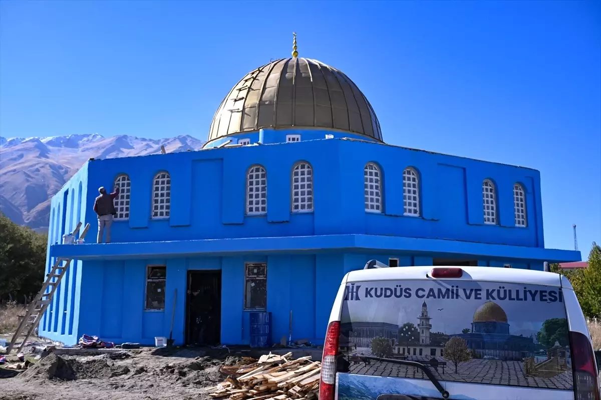 Van’ın Gevaş ilçesinde, Müslümanların ilk kıblesi Mescidi Aksa Külliyesi’nde yer alan Kubbetüs Sahra Camii’nin mimari açıdan benzeri yapılıyor.
