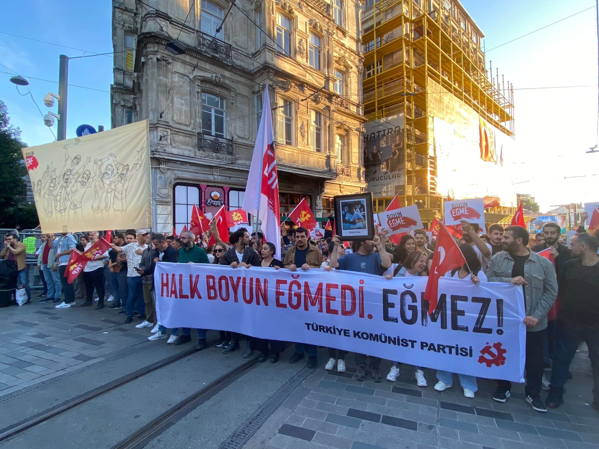 Öte yandan Türkiye Komünist Partili’ler de Taksim Tünel Meydanı’nda toplandı.