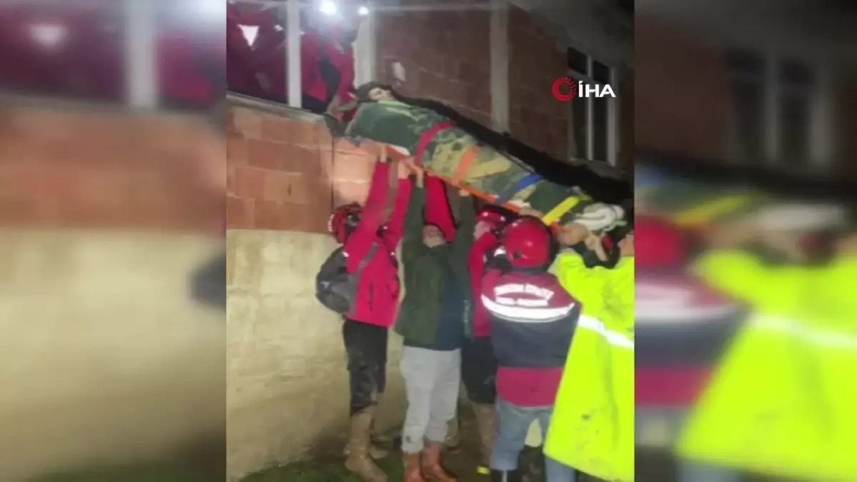 Trabzon’da önceki gün etkili olan şiddetli yağışlar 4 ilçede sel ve heyelanları neden oldu. Sel sularının beraberinde getirdiği heyelanlar bazı bölgelerde ulaşımı etkilerken, Arsin ilçesindeki Yolüstü mahallesinde yaşayan Ayşenur Kaba (27), evinin yanındaki ırmağın taşmasını sonucu ağaçların zarar görmesini engellemek için müdahale etmek istedi. Ağaçların etrafını açtıktan sonra evine gitmek isteyen Ayşenur, bir gürültü ile kendini toprağın altında buldu. Kış aylarında kullanmak için biriktirdiği odunların arkasında meydana gelen heyelan ile toprak ve odun parçaların altında kalan Ayşenur, anne ve ağabeyine seslenerek yardım istedi. Annesinin sesini duymasıyla müdahale edilen Ayşenur, ağabeyinin gayretleri ile toprağın içerisinden çıkartıldı. Çamur içerisinde kalan ve eve getirilen Ayşenur için ailesi 112 Acil Çağrı Merkezi’ni aradı. İhbar üzerine olay yerine gitmek isteyen ekipler karayolunda meydana gelen heyelan nedeniyle zor anlar yaşadı. İtfaiye ve AKUT’tan oluşan kurtarma ekipleri, eve ulaştıklarında Ayşenur Kaba’nın evini su bastığı ve giriş kapısında giremeyeceklerini anladı. Pencereden evin içerisinde alınan sedyeye konulan Ayşenur, evin pencere bölümünde dışarıya çıkartıldı. Heyelan sonucu yollarda meydana gelen göçükler nedeniyle Ayşenur Kaba, sedye ile yaklaşık 2 kilometrelik yolculuğun ardından kendisini bekleyen ambulansa konuldu. Ambulans ile Kanuni Eğitim ve Araştırma Hastanesi’ne getirilen genç kız tedavi altına alındı.