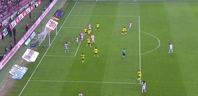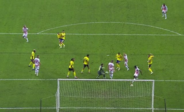 Deniz Çoban: Golün verilmesi daha doğru olurdu. Artık kaleci hamle yapacak olsa da bir şey değişmez. Kaleci hamle yapacaksa önceden yapmalıydı. 17 numaralı oyuncu çıksa da kalecinin kurtarma şansı yok.