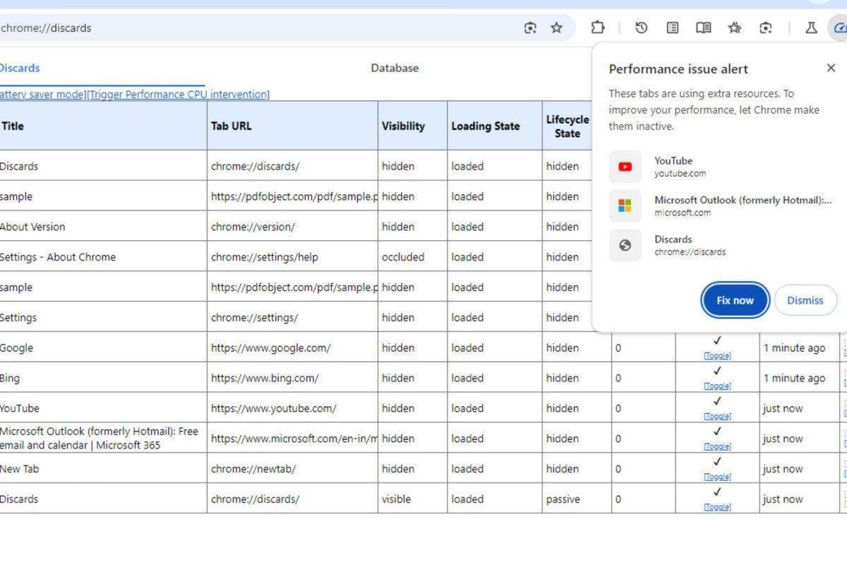 Bu uyarıda en çok hangi sekmelerin performansı etkilediği gösterilecek. Böylece kullanıcılar, hangi açık sekmelerin performans kaybına neden olduğunu görebilecek.